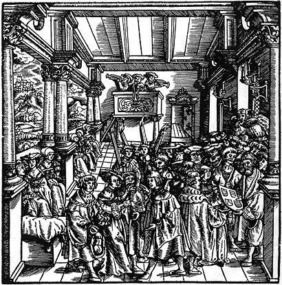 | Frühe Tanzstunde für die reifere Jugend: Zum Abschluß des von Herzog Hermann zu Schwaben und Alemannien vom 16. bis zum 20. August 1080 veranstalteten Augsburger Turniers, des achten in der Zählung von Georg Rixner, fand ein Ball statt, auf dem Frauen und Jungfrauen die neu er- wählten Turniervögte ehrten. | |||